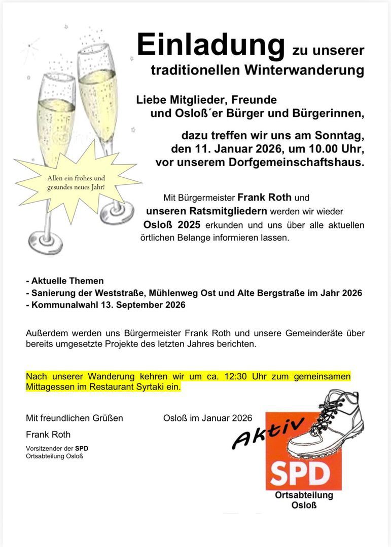 - 05.01.25, 10.00 Uhr, Winterwanderung ab DGH